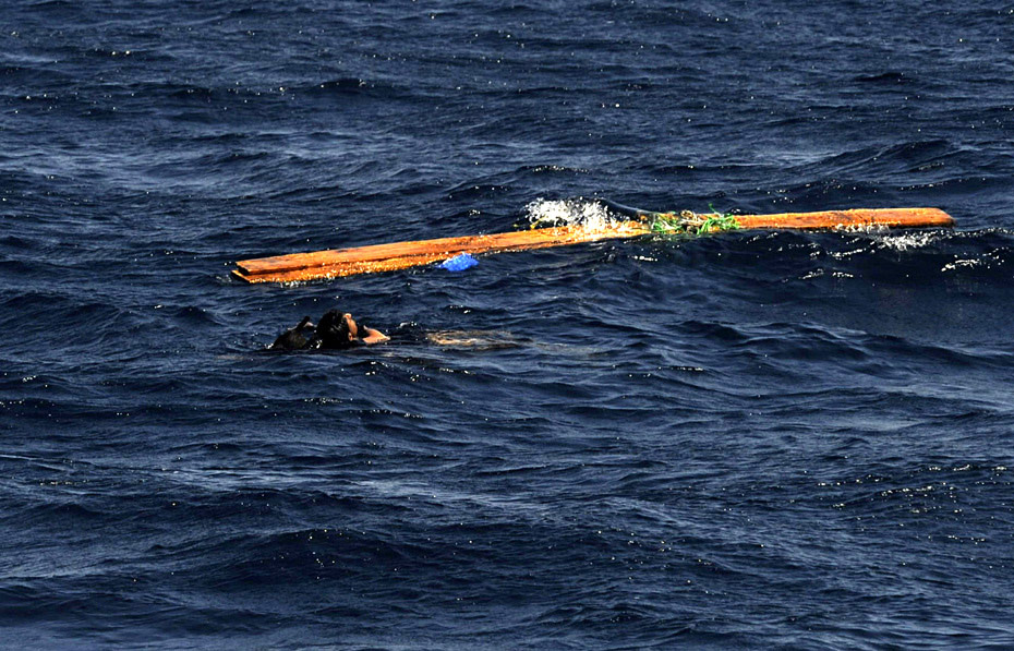 11月17日,亞丁灣,3名漁民抱著木板在海面上漂流3天后獲救。據(jù)悉,他們遭遇了十幾名名疑似海盜的劫持,海盜們讓其選擇或跳海逃生或被殺死。圖片來源:中國新聞網(wǎng)