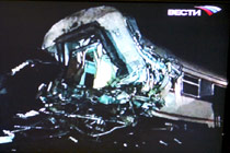 莫斯科時間27日21點34分,由莫斯科開往圣彼得堡的166次“涅瓦特快號”客運列車的幾節(jié)車廂發(fā)生脫軌事故。圖片來源:中國新聞網(wǎng)