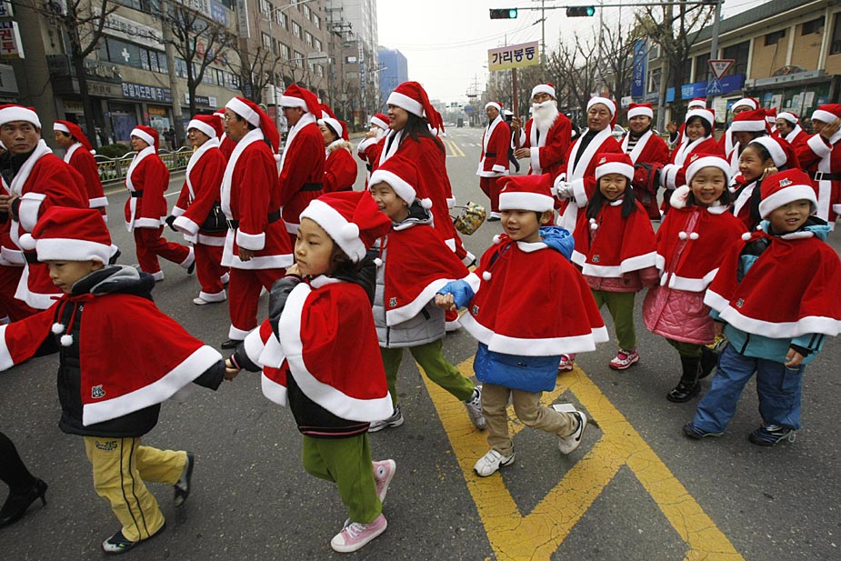 12月1日,韓國首都首爾市,一千多名“圣誕老人”舉行游行為社會慈善項目籌款。圖片來源:中國新聞網(wǎng)