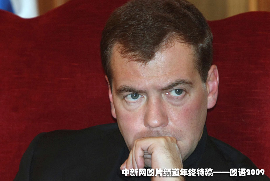 思考者:2009年1月20日,俄羅斯總統(tǒng)梅德韋杰夫在參加地方議會(huì)討論時(shí)陷入沉思中。