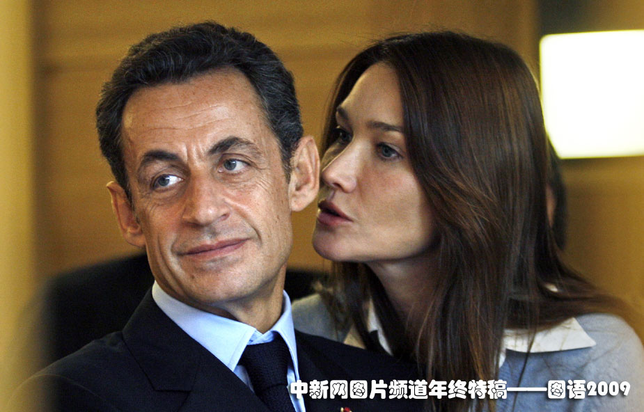 甜言蜜語:2009年11月2日,法國總統(tǒng)薩科奇和夫人貝魯尼在聽取醫(yī)院工作人員的匯告。
