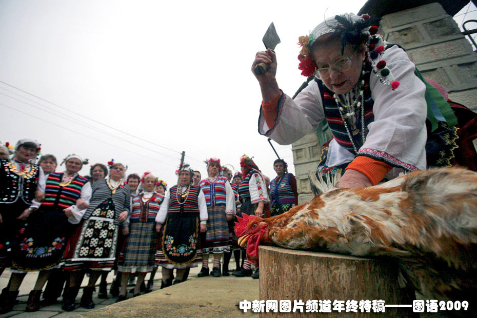 保加利亞“公雞節(jié)”——保加利亞首都索非亞?wèn)|部一個(gè)村莊2月2日慶祝“公雞節(jié)”,當(dāng)?shù)貗D女手舉穿著褲子的公雞又唱又跳,之后宰殺公雞作為祭祀貢品。當(dāng)?shù)貞c祝該節(jié)意在為家中男孩祈求健康。