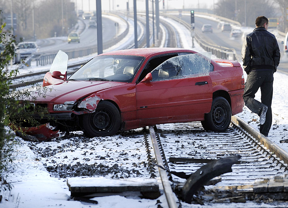 圖為12月19日,嚴(yán)寒和大雪使德國的一些車輛失控造成交通事故。