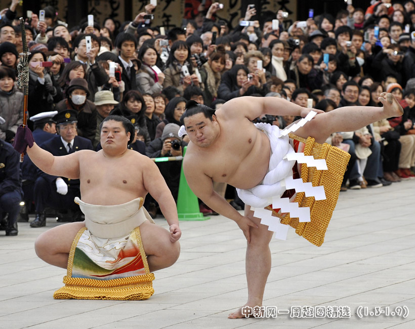 1月6日,日本舉行了傳統(tǒng)的相撲表演迎新年活動(dòng)。圖片來(lái)源:中國(guó)新聞網(wǎng)>>點(diǎn)擊觀看詳細(xì)內(nèi)容