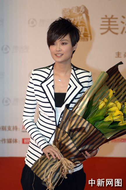 圖為李宇春瀟灑帥氣亮相大典。中新網(wǎng)記者 金碩 攝