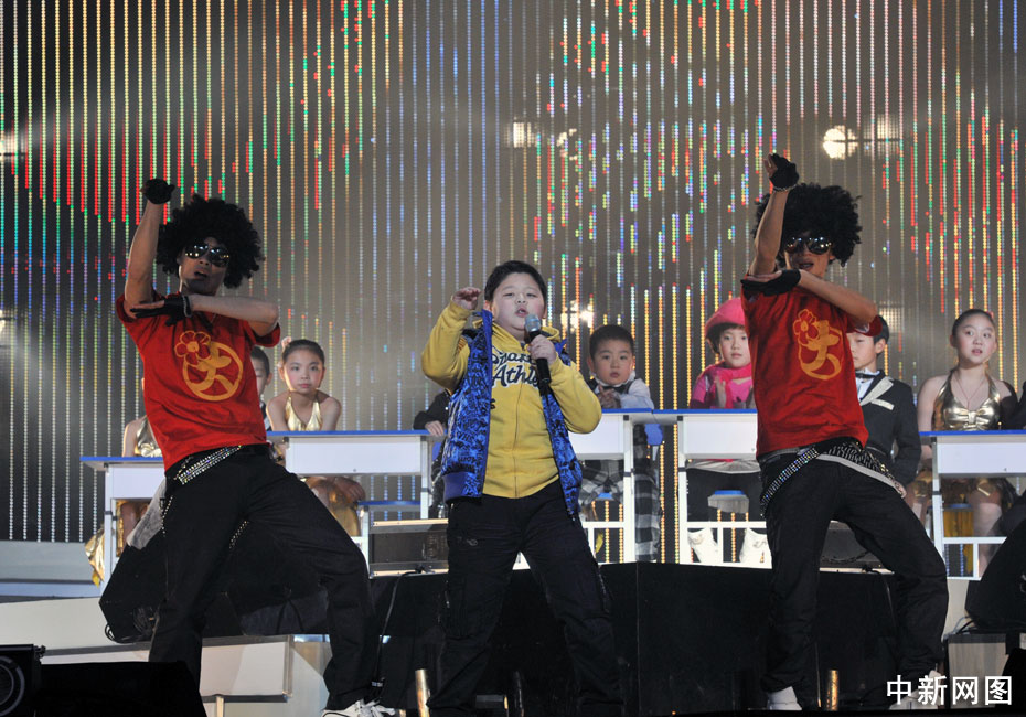1月11日晚,第二屆音樂風(fēng)云榜新人盛典在京舉行,盛典現(xiàn)場(chǎng)的音樂課上,兒童版的Wonder Girl、Super Junior、邁克爾·杰克遜、曾軼可、大張偉紛紛登臺(tái)獻(xiàn)藝,讓現(xiàn)場(chǎng)觀眾們笑聲不斷。中新網(wǎng)記者 金碩 攝