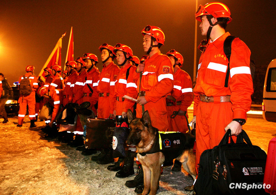 1月13日晚,中國(guó)國(guó)際救援隊(duì)從首都國(guó)際機(jī)場(chǎng)搭乘飛赴海地執(zhí)行救援任務(wù)。據(jù)悉,救援隊(duì)一行共計(jì)68人,由三個(gè)分隊(duì)組成,包括來自國(guó)家地震局的10人專家分隊(duì)等。據(jù)了解,救援隊(duì)隨機(jī)攜帶了總價(jià)值約1200萬元人民幣的10余噸救災(zāi)物資,其中包括救援、通訊、后勤保障、醫(yī)療、食品在內(nèi)等物資設(shè)備和三只搜救犬。中新社發(fā) 雷虹 攝
