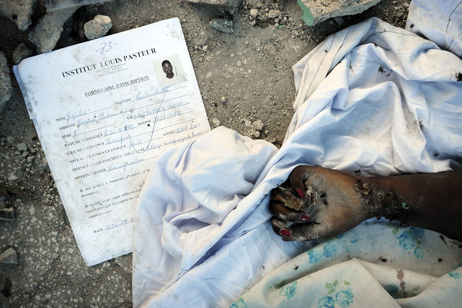 海地7級大地震后,街邊一排排無名尸體已開始腐爛,在巨大的廢墟下時不時的傳出被壓難民的呻吟聲,幾乎夷為平地的首都太子港淪為露天難民營。圖片來源:中國新聞網