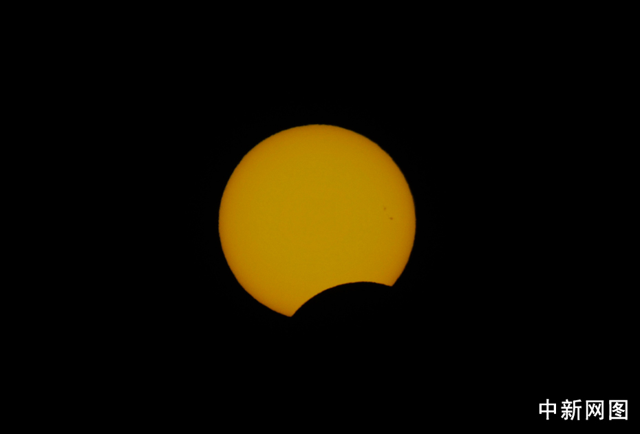 圖為北京時間15:47拍攝到的太陽。中新網(wǎng)記者 金碩 攝