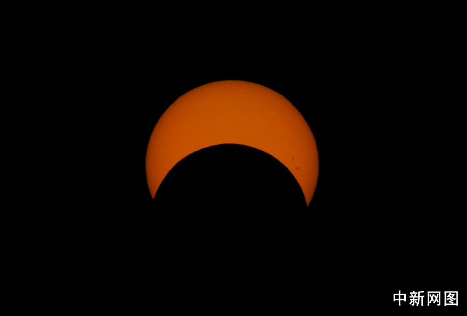 圖為北京時(shí)間16:28拍攝到的太陽。中新網(wǎng)記者 金碩 攝