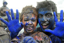 2月20日,馬來西亞民眾圍聚在首都吉隆坡附近的佛光山東禪寺,紛紛將自己繪成老虎的樣子,呼吁大家保護野生虎。圖片來源:中國新聞網(wǎng)