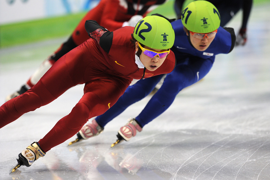 當(dāng)?shù)貢r(shí)間2月24日,溫哥華冬奧會(huì)女子短道速滑3000米接力A組決賽中,中國(guó)隊(duì)王濛、周洋、孫琳琳、張會(huì)四朵金花聯(lián)袂出擊,最終將金牌歸入中國(guó)隊(duì)囊中。圖片來(lái)源:中國(guó)新聞網(wǎng)
