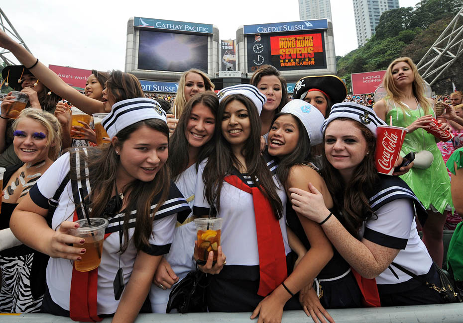 近日,“香港國(guó)際七人欖球賽”在大球場(chǎng)開(kāi)鑼。來(lái)自世界各地的球迷盛裝捧場(chǎng),狂樂(lè)連場(chǎng)賽事。圖片來(lái)源:中國(guó)新聞網(wǎng)
