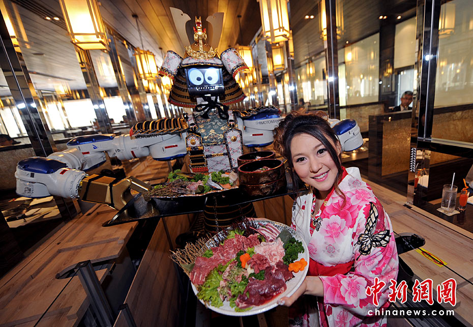 這家日本餐館是泰國首家擁有機器人服務(wù)員的餐館,顧客可以通過電子觸摸屏進行點菜,機器人則會帶來相應的服務(wù)。機器人服務(wù)員能有節(jié)奏地跳舞,還可以自動到餐桌為客人收走空盤子。
