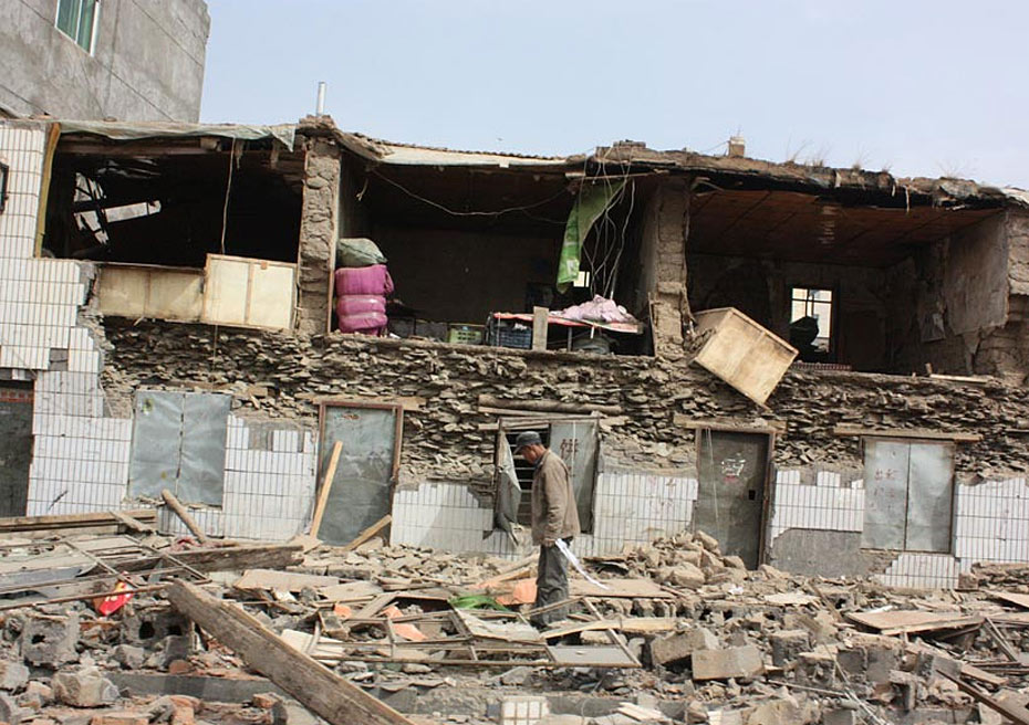 圖為4月14日拍攝的玉樹(shù)州結(jié)古鎮(zhèn)倒塌的房屋。圖片來(lái)源:新華網(wǎng) 吳宏 攝