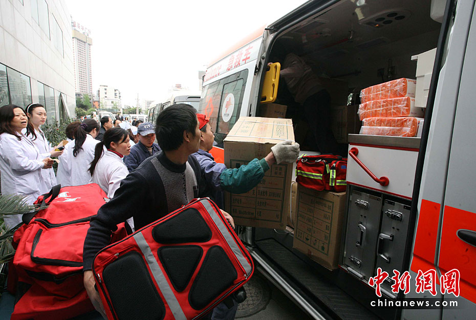 圖為4月14日下午,由四川省醫(yī)院、華西醫(yī)院23人組成的醫(yī)療救援隊(duì)緊急趕赴青海省玉樹縣地震災(zāi)區(qū)參與醫(yī)療救援。中新社發(fā) 劉忠俊 攝