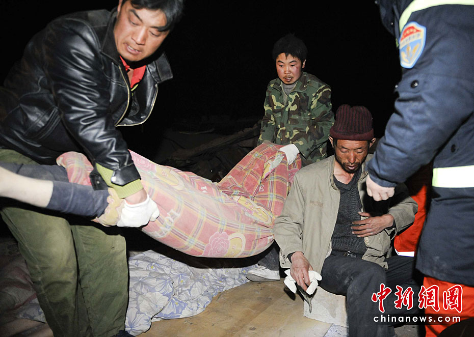 圖為4月15日凌晨1時(shí),玉樹縣的民眾在中國(guó)國(guó)際救援隊(duì)隊(duì)員的幫助下清理遇難者遺體。中新社發(fā) 廖攀 攝