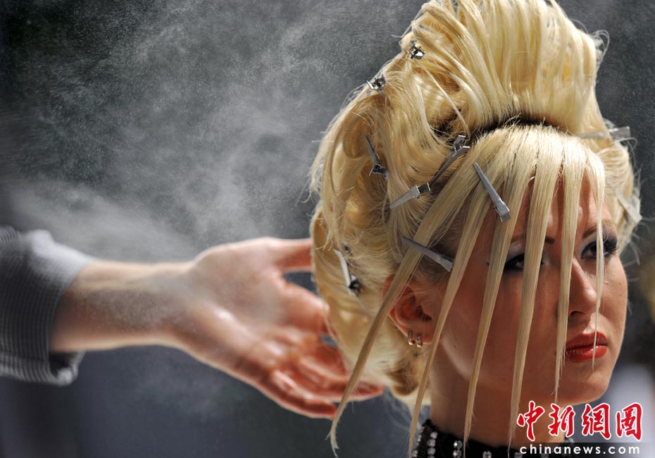 近日,第九屆“水晶天使”國際發(fā)型藝術(shù)節(jié)開幕,設(shè)計(jì)師紛紛秀出自己設(shè)計(jì)的新款發(fā)型。圖片來源:中國新聞網(wǎng)