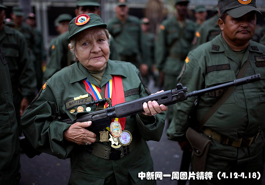 4月13日周二是委內(nèi)瑞拉的“民兵日”,一位老民兵手持步槍在首都加拉加斯參加紀(jì)念活動(dòng)?偨y(tǒng)查韋斯當(dāng)天發(fā)表講話,以此紀(jì)念他在八年前被政變短暫推翻后重新執(zhí)政。