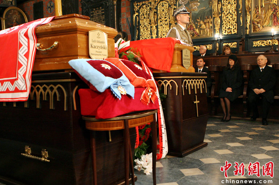 當?shù)貢r間4月18日,卡欽斯基夫婦的葬禮在波蘭南部城市克拉科夫舉行。波蘭總統(tǒng)卡欽斯基及其夫人乘坐的專機10日在俄羅斯斯摩棱斯克失事,機上人員全部遇難。圖片來源:中國新聞網