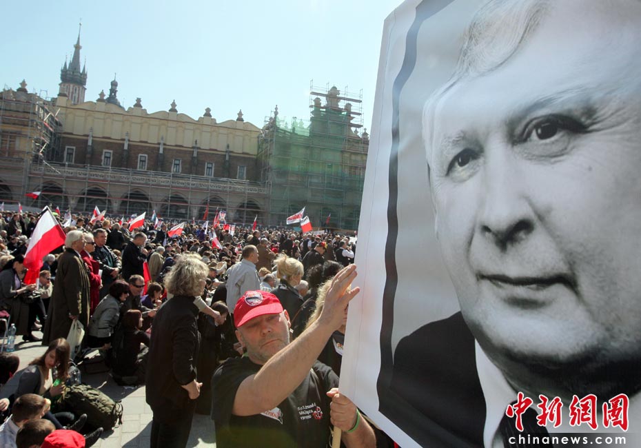 當?shù)貢r間4月18日,卡欽斯基夫婦的葬禮在波蘭南部城市克拉科夫舉行。波蘭總統(tǒng)卡欽斯基及其夫人乘坐的專機10日在俄羅斯斯摩棱斯克失事,機上人員全部遇難。圖片來源:中國新聞網(wǎng)