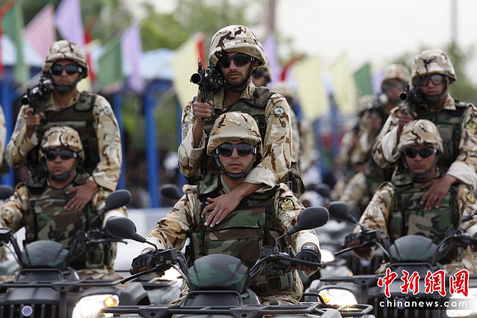 4月18日,伊朗德黑蘭舉行伊朗建軍節(jié)閱兵式。伊朗在閱兵式上展出了“力量”、“流星”和“泥石”等地對(duì)地導(dǎo)彈。圖片來源:中國新聞網(wǎng)