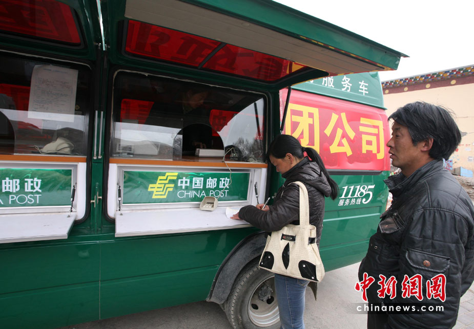 4月20日,寧夏郵政抗震救災(zāi)突擊隊六輛全電子移動郵政業(yè)務(wù)車開進玉樹地震災(zāi)區(qū),開始受理市民信函、金融等業(yè)務(wù)辦理,目前玉樹城內(nèi)已有多家銀行機構(gòu)和商業(yè)網(wǎng)點開始恢復(fù)營業(yè)。圖為玉樹街頭市民正在排隊辦理郵政業(yè)務(wù)。中新社發(fā) 劉忠俊 攝