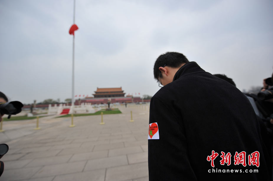 4月21日,為表達(dá)全國各族人民對青海玉樹地震遇難同胞的深切哀悼,中國國務(wù)院決定,舉行全國哀悼活動(dòng),全國和駐外使領(lǐng)館下半旗志哀,停止公共娛樂活動(dòng)。圖為北京天安門廣場上哀悼遇難者的民眾。中新網(wǎng)記者 金碩 攝