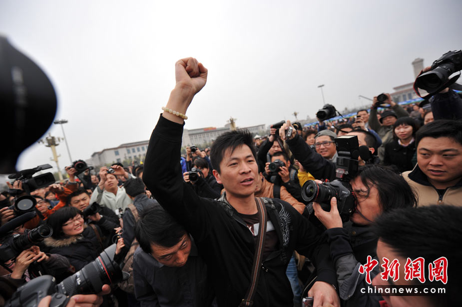 4月21日,為表達(dá)全國(guó)各族人民對(duì)青海玉樹地震遇難同胞的深切哀悼,中國(guó)國(guó)務(wù)院決定,舉行全國(guó)哀悼活動(dòng),全國(guó)和駐外使領(lǐng)館下半旗志哀,停止公共娛樂活動(dòng)。圖為北京天安門廣場(chǎng)上哀悼遇難者的民眾。中新網(wǎng)記者 金碩 攝