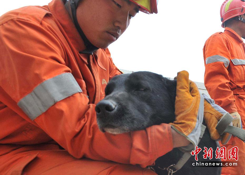 名貴的黑貝犬是中國國家救援隊(duì)趕赴青海玉樹地震災(zāi)區(qū)6只搜救犬隊(duì)成員之一,身價(jià)近百萬元人民幣。4月21日清晨八時(shí)許,它在救援隊(duì)員的帶領(lǐng)下,到玉樹地震災(zāi)區(qū)中心商業(yè)街廢墟里,四處奔波,盡職盡力尋找生命跡象。10時(shí)后,他和救援隊(duì)員都出現(xiàn)高原反應(yīng),暫時(shí)休整,準(zhǔn)備再戰(zhàn)。賈國榮 攝