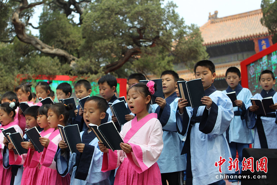 5月15日,首屆“兩岸漢字藝術(shù)節(jié)”新聞發(fā)布會在北京孔廟舉行。原文化部長、著名作家王蒙與臺灣文化總會會長劉兆玄等共同書寫漢字——“漢字藝術(shù)源遠(yuǎn)流長”。 中新社發(fā) 蘇丹 攝