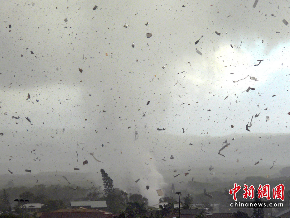 6月3日,澳大利亞新南威爾士州海濱城鎮(zhèn)倫諾克斯黑德遭到龍卷風(fēng)襲擊,大樹被連根拔起,屋頂被掀翻,重型拖車也被拋到半空中。數(shù)千所民居停電。一共有12所房屋在這場龍卷風(fēng)中被摧毀,6人受傷,傷勢不重。所幸沒有人員死亡的報(bào)告。圖片來源:中國新聞網(wǎng)