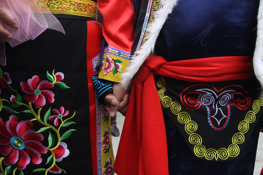 4月26日,四川省北川縣政府在擂鼓鎮(zhèn)吉娜羌寨為20對“5·12”大地震后重組家庭夫婦舉行集體婚禮。北川官方為他們舉行壩壩喜宴,每對新人約請8名親朋好友參加;閼c活動結束后,新人們將前往海南,享受政府提供價值10萬元的厚禮——三亞五日蜜月旅行。這是北川自2003年成立羌族自治縣以來舉行的首場集體婚禮。由政府出資,專為北川籍震后重組家庭操辦的。此次活動有利于災民看到人生的希望,走出地震陰影,開始新的生活,“建起精神家園”的意義。 中新社發(fā) 郭國權 攝
