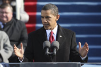 美國東部時(shí)間1月20日上午12點(diǎn)05分(北京時(shí)間21日凌晨1點(diǎn)05分)。四十七歲的奧巴馬在華盛頓國會山宣誓就職。美國建國二百三十二年來,第一次迎來了一位非洲裔總統(tǒng)。 【專題】