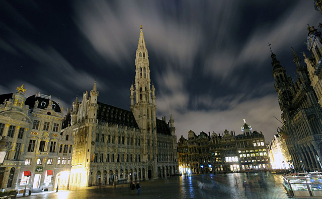 比利時布魯塞爾:3月28日晚20點30分后,比利時首都布魯塞爾市中心的大廣場的景觀照明被熄滅。