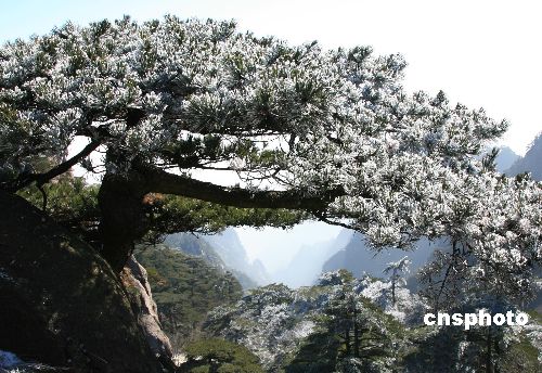 12月6日,安徽黃山風(fēng)景區(qū)迎來今年入冬以來第一場雪。7日,雪止轉(zhuǎn)晴,氣溫驟降,黃山始信峰景區(qū)出現(xiàn)晶瑩剔透的雪松奇觀,“處處皆是琉璃界、時時身在水晶宮”的奇妙感覺,是一道獨具魅力的迷人景色,令游客嘆為觀止。中新社發(fā) 方也廣德 攝