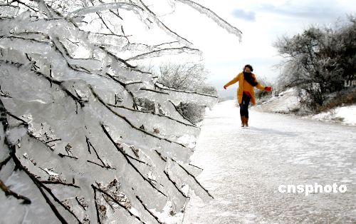 1月12日,雪后的江蘇連云港美不勝收。11日夜間連云港降下2008年第一場(chǎng)雪。連云港云臺(tái)山脈穿上一層白色冰衣,千姿百態(tài),冰掛和雪凇宛如美麗的童話世界。中新社發(fā) 王健民 攝
