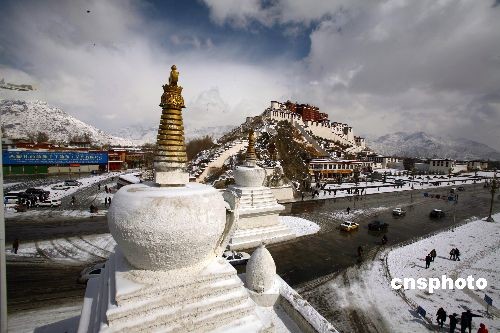 圖為雪后雄偉壯麗的布達(dá)拉宮。2月19日晚至20日中午,西藏拉薩下起了2008年春節(jié)后的首場大雪。中新社發(fā) 那勇順 攝