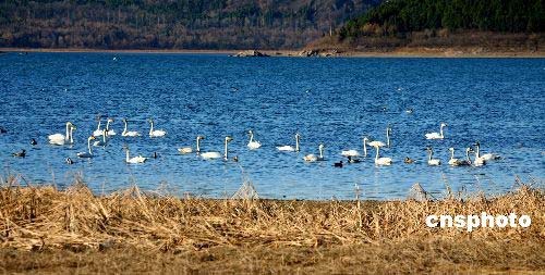 美圖:白天鵝在京郊懷柔水庫戲水