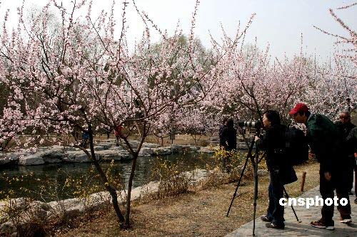 3月20日,北京植物園桃花盛開迎春爭艷,吸引了不少游客。中新社發(fā) 李遠(yuǎn)志 攝