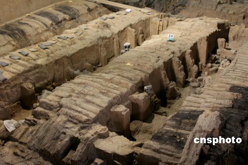 10月24日獲悉,已開(kāi)放13年的西安兵馬俑二號(hào)坑陳列廳將于2007年11月1日起封館,對(duì)展廳屋頂漏雨情況進(jìn)行全面處理。秦始皇兵馬俑二號(hào)坑總面積約8000平方米,是3個(gè)坑中最為壯觀的軍陣,目前,二號(hào)坑中發(fā)現(xiàn)的文物2000件,其中將軍俑、鞍馬俑、跪姿射俑為首次發(fā)現(xiàn)。二號(hào)坑陳列廳于1988年動(dòng)工修建,1994年建成對(duì)外開(kāi)放。此次修館是對(duì)二號(hào)坑屋頂進(jìn)行翻修,將原屋頂揭掉重新建造屋頂。二號(hào)坑從11月1日起封閉,封館之后文物將陸續(xù)被轉(zhuǎn)移到文物展覽廳等地方。在文物搬離之后,為保證坑內(nèi)還未發(fā)掘文物的安全,二號(hào)坑將全部回填、嚴(yán)密覆蓋。這一工程大約為期5個(gè)月,預(yù)計(jì)到2008年4月20日,二號(hào)坑屋頂將處理完畢,“五一”之前再向游客開(kāi)放。中新社發(fā) 程千俊 攝