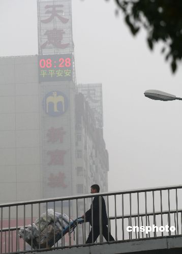 10月26日,北京阜外大街濃霧。當(dāng)天清晨,北京市氣象局發(fā)布大霧橙色預(yù)警信號(hào),部分地區(qū)出現(xiàn)能見(jiàn)度小于200米的濃霧。中新社發(fā) 趙振清 攝