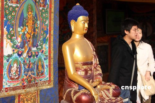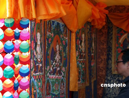 11月5日,中國青海熱貢藝術(shù)展會(huì)揭幕儀式在北京舉行。青海省黃南藏族自治州的“中國青海熱貢藝術(shù)展”本月2日首度亮相北京秋季書市后,神秘而璀璨的青海熱貢文化藝術(shù)瑰寶大放異彩,成為北京書市前所未有的一大亮點(diǎn),為本屆書市帶來一股具有濃郁青海文化特色的異域之風(fēng),使京城市民有緣與這一中國首批非物質(zhì)文化遺產(chǎn)零距離接觸。中新社發(fā) 任海霞 攝