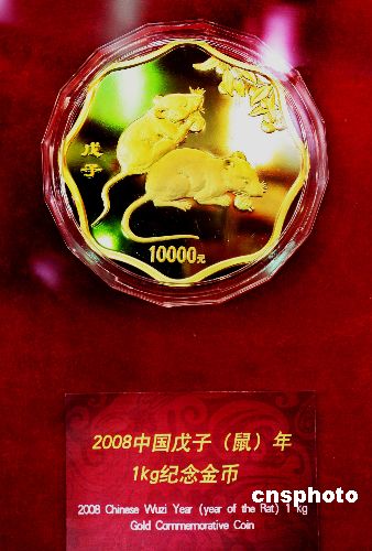 11月9日,一重達(dá)1千克的2008中國戊子(鼠)年生肖紀(jì)念金幣首次出現(xiàn)在第三屆北京金融博覽會(huì)。據(jù)悉,這套鼠年生肖紀(jì)念金幣將于今年年底正式發(fā)售,其中最重的單枚戊子(鼠)年紀(jì)念金幣重達(dá)10公斤。本次金博會(huì)主題為“投資、融資、理財(cái)”,匯集銀行、基金、證券、保險(xiǎn)等一百多家金融機(jī)構(gòu),推出一千多個(gè)金融產(chǎn)品參展。中新社發(fā) 鄭雄增 攝