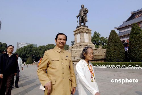 十一月十二日,廣州市各界人士在廣州中山紀(jì)念堂廣場(chǎng)孫中山先生銅像前,舉行紀(jì)念孫中山先生誕辰141周年紀(jì)念活動(dòng),并向?qū)O中山先生銅像敬獻(xiàn)花籃。圖為扮演孫中山先生的演員和社會(huì)知名人士參加了紀(jì)念儀式。中新社發(fā) 劉衛(wèi)勇 攝