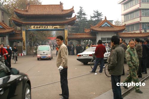 十一月十二日凌晨三時(shí)零二分, 河南平煤集團(tuán)公司十礦發(fā)生一起煤與瓦斯突出事故,十二人至今被困井下,下落不明。圖為礦工家屬在十礦大門外焦急等待。中新社發(fā) 史寶銀 攝