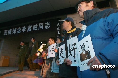 12月9日,八一體工大隊(duì)隊(duì)長(zhǎng)李富勝的追悼會(huì)在八寶山舉行,中國(guó)足壇及社會(huì)各界人士紛紛前來悼念這位中國(guó)足球歷史上的“鐵門”。李富勝作為20世紀(jì)80年代初期中國(guó)國(guó)家隊(duì)的主力門將,被廣大球迷稱為“鐵門”。中新社發(fā) 富田 攝