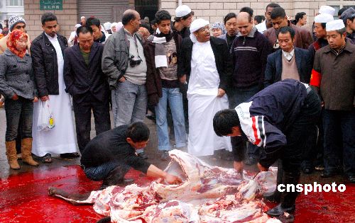 12月19日上午,在浙江義烏經(jīng)商的阿拉伯國家和國內(nèi)新疆、寧夏等地的7000余名穆斯林商人,聚集在市區(qū)江濱西路清真寺內(nèi)參加會禮,歡度穆斯林的傳統(tǒng)節(jié)日——古爾邦節(jié)。近年來,巴基斯坦、阿聯(lián)酋、埃及、也門、沙特、科威特、伊朗、阿富汗、約旦、毛里塔尼亞等40個國家的5000多名穆斯林商人到義烏市場常駐采購。為尊重國外商人的宗教信仰,該市專門建造了一座能容納4000多人的伊斯蘭教活動場所——清真大寺。中新社發(fā) 張建成 攝