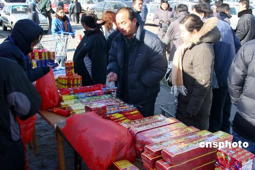 12月30日,北京市開始大規(guī)模向五環(huán)外沃爾瑪?shù)却笮统辛闶劬W(wǎng)點(diǎn)配送花炮,五環(huán)外的一些臨時(shí)網(wǎng)點(diǎn)也掛上新頒發(fā)的許可證準(zhǔn)備開業(yè)。元旦節(jié)前,市民可到五環(huán)外的這些零售網(wǎng)點(diǎn)購買花炮。中新社發(fā) 富田 攝