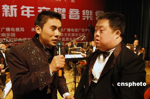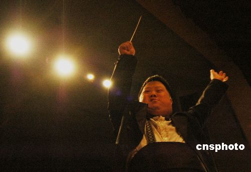 2008元旦之夜,《讓世界充滿愛》——“奇才指揮家”舟舟傾情指揮的大型新年交響音樂會在安徽巢湖舉行。委婉動人的音樂令在場上千人領(lǐng)略了舟舟的指揮風(fēng)采,感受了交響樂的魅力,給步入新年的巢湖市民帶來了無數(shù)激情、夢想與歡樂。中新社發(fā) 徐振華 攝